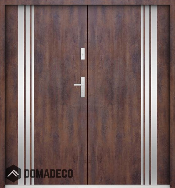 The door is made of stainless steel. Inside it is filled with PUR polyurethane foam and wood. The thickness of the door slab is 2.2 inch. Dual sealing system - one seal is in the dap of the frame and the other is located in the supporting part of the door slab. They reduce vibration and protect your house from losing the heat. They don't change their volume under the influence of atmospheric conditions. The door frame has anti-burglar reinforcements in hinge parts and locking points.