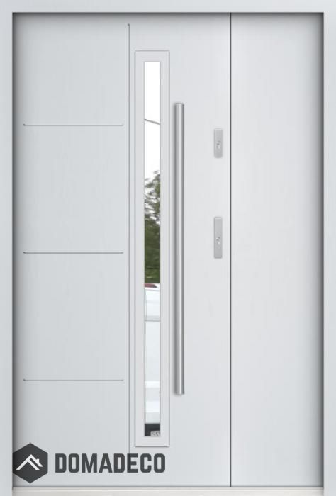 The door is made of stainless steel. Inside it is filled with PUR polyurethane foam and wood. The thickness of the door slab is 2.2 inch. Dual sealing system - one seal is in the dap of the frame and the other is located in the supporting part of the door slab. They reduce vibration and protect your house from losing the heat. They don't change their volume under the influence of atmospheric conditions. The door frame has anti-burglar reinforcements in hinge parts and locking points.