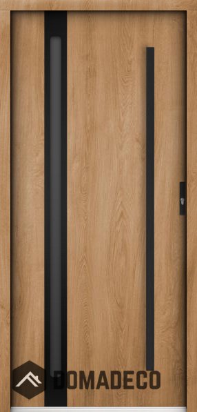 The door is made of stainless steel. Inside it is filled with PUR polyurethane foam and wood. The thickness of the door slab is 2.2 inch. Dual sealing system - one seal is in the dap of the frame and the other is located in the supporting part of the door slab. They reduce vibration and protect your house from losing the heat. They don't change their volume under the influence of atmospheric conditions. The door frame has anti-burglar reinforcements in hinge parts and locking points.