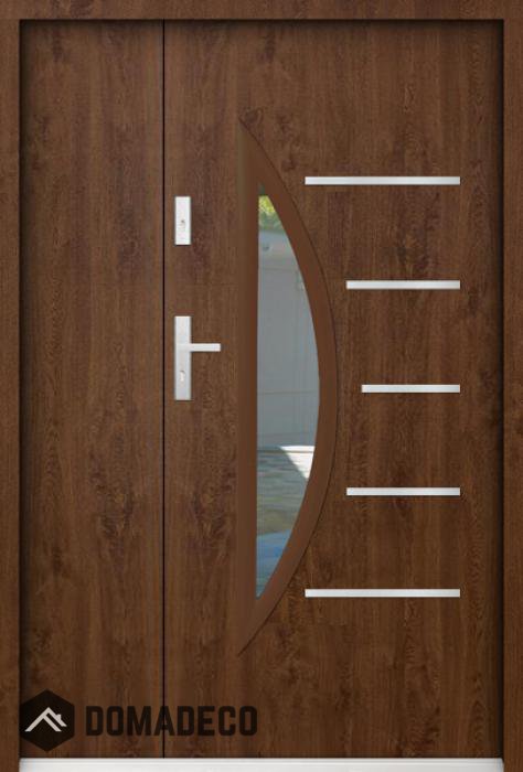 The door is made of stainless steel. Inside it is filled with PUR polyurethane foam and wood. The thickness of the door slab is 2.2 inch. Dual sealing system - one seal is in the dap of the frame and the other is located in the supporting part of the door slab. They reduce vibration and protect your house from losing the heat. They don't change their volume under the influence of atmospheric conditions. The door frame has anti-burglar reinforcements in hinge parts and locking points.