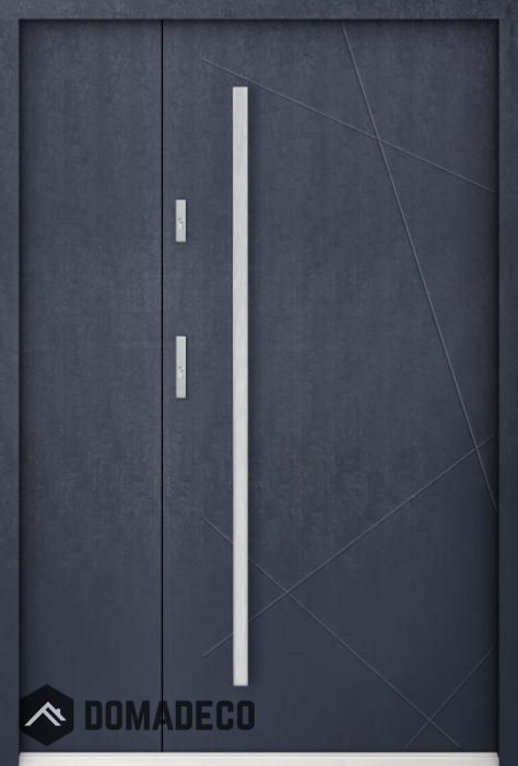 The door is made of stainless steel. Inside it is filled with PUR polyurethane foam and wood. The thickness of the door slab is 2.2 inch. Dual sealing system - one seal is in the dap of the frame and the other is located in the supporting part of the door slab. They reduce vibration and protect your house from losing the heat. They don't change their volume under the influence of atmospheric conditions. The door frame has anti-burglar reinforcements in hinge parts and locking points.