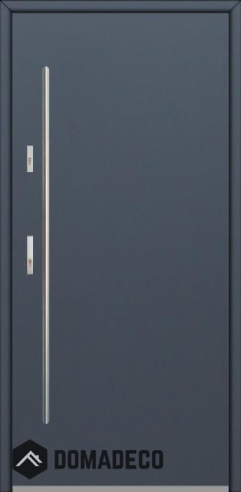 The door is made of stainless steel. Inside it is filled with PUR polyurethane foam and wood. The thickness of the door slab is 2.5 inch. Dual sealing system - one seal is in the dap of the frame and the other is located in the supporting part of the door slab. They reduce vibration and protect your house from losing the heat. They don't change their volume under the influence of atmospheric conditions. The door frame has anti-burglar reinforcements in hinge parts and locking points.