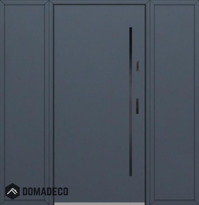 The door is made of stainless steel. Inside it is filled with PUR polyurethane foam and wood. The thickness of the door slab is 2.1 inch. Dual sealing system - one seal is in the dap of the frame and the other is located in the supporting part of the door slab. They reduce vibration and protect your house from losing the heat. They don't change their volume under the influence of atmospheric conditions. The door frame has anti-burglar reinforcements in hinge parts and locking points.