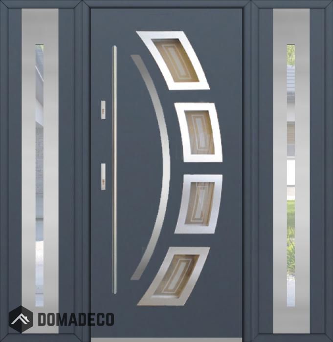 The door is made of stainless steel. Inside it is filled with PUR polyurethane foam and wood. The thickness of the door slab is 2.1 inch. Dual sealing system - one seal is in the dap of the frame and the other is located in the supporting part of the door slab. They reduce vibration and protect your house from losing the heat. They don't change their volume under the influence of atmospheric conditions. The door frame has anti-burglar reinforcements in hinge parts and locking points.