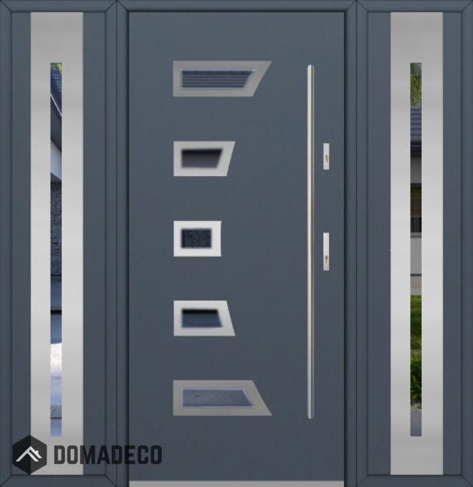 The door is made of stainless steel. Inside it is filled with PUR polyurethane foam and wood. The thickness of the door slab is 2.1 inch. Dual sealing system - one seal is in the dap of the frame and the other is located in the supporting part of the door slab. They reduce vibration and protect your house from losing the heat. They don't change their volume under the influence of atmospheric conditions. The door frame has anti-burglar reinforcements in hinge parts and locking points.