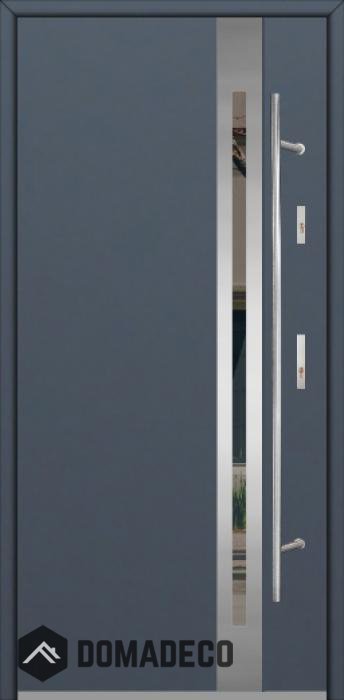The door is made of stainless steel. Inside it is filled with PUR polyurethane foam and wood. The thickness of the door slab is 2.5 inch. Dual sealing system - one seal is in the dap of the frame and the other is located in the supporting part of the door slab. They reduce vibration and protect your house from losing the heat. They don't change their volume under the influence of atmospheric conditions. The door frame has anti-burglar reinforcements in hinge parts and locking points.