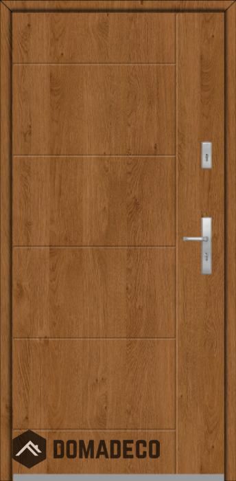 The door is made of stainless steel. Inside it is filled with PUR polyurethane foam and wood. The thickness of the door leaf is 64mm. Dual sealing system - one seal is in the dap of the frame and the other is located in the supporting part of the door leaf. They reduce vibration and protect your house from losing the heat. They don't change their volume under the influence of atmospheric conditions. The door frame has anti-burglar reinforcements in hinge parts and locking points.