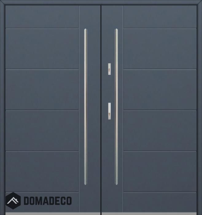 The door is made of stainless steel. Inside it is filled with PUR polyurethane foam and wood. The thickness of the door slab is 2.1 inch. Dual sealing system - one seal is in the dap of the frame and the other is located in the supporting part of the door slab. They reduce vibration and protect your house from losing the heat. They don't change their volume under the influence of atmospheric conditions. The door frame has anti-burglar reinforcements in hinge parts and locking points.