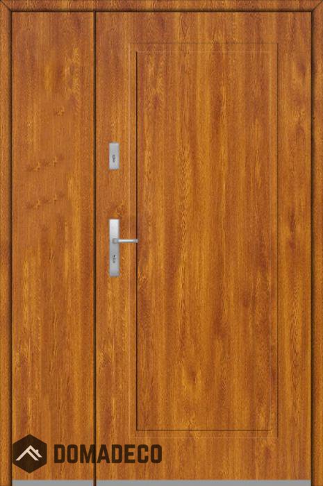 The door is made of stainless steel. Inside it is filled with PUR polyurethane foam and wood. The thickness of the door slab is 2.1 inch. Dual sealing system - one seal is in the dap of the frame and the other is located in the supporting part of the door slab. They reduce vibration and protect your house from losing the heat. They don't change their volume under the influence of atmospheric conditions. The door frame has anti-burglar reinforcements in hinge parts and locking points.