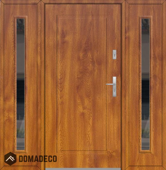 The door is made of stainless steel. Inside it is filled with PUR polyurethane foam and wood. The thickness of the door slab is 2.1 inch. Dual sealing system - one seal is in the dap of the frame and the other is located in the supporting part of the door slab. They reduce vibration and protect your house from losing the heat. They don't change their volume under the influence of atmospheric conditions. The door frame has anti-burglar reinforcements in hinge parts and locking points.