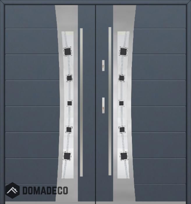 The door is made of stainless steel. Inside it is filled with PUR polyurethane foam and wood. The thickness of the door leaf is 54mm. Dual sealing system - one seal is in the dap of the frame and the other is located in the supporting part of the door leaf. They reduce vibration and protect your house from losing the heat. They don't change their volume under the influence of atmospheric conditions. The door frame has anti-burglar reinforcements in hinge parts and locking points.
