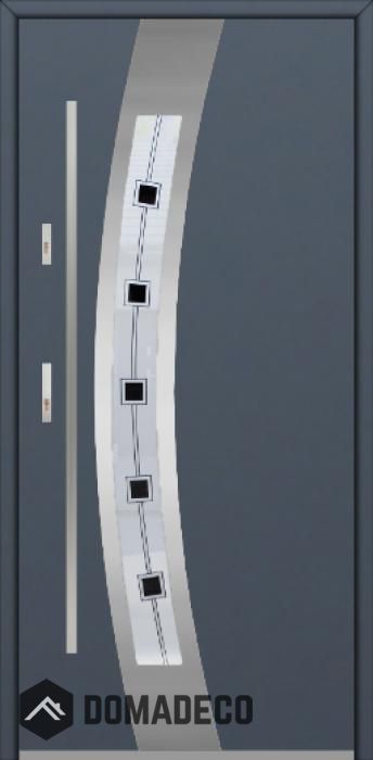 The door is made of stainless steel. Inside it is filled with PUR polyurethane foam and wood. The thickness of the door leaf is 64mm. Dual sealing system - one seal is in the dap of the frame and the other is located in the supporting part of the door leaf. They reduce vibration and protect your house from losing the heat. They don't change their volume under the influence of atmospheric conditions. The door frame has anti-burglar reinforcements in hinge parts and locking points.