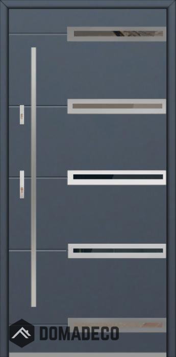 The door is made of stainless steel. Inside it is filled with PUR polyurethane foam and wood. The thickness of the door slab is 2.5 inch. Dual sealing system - one seal is in the dap of the frame and the other is located in the supporting part of the door slab. They reduce vibration and protect your house from losing the heat. They don't change their volume under the influence of atmospheric conditions. The door frame has anti-burglar reinforcements in hinge parts and locking points.