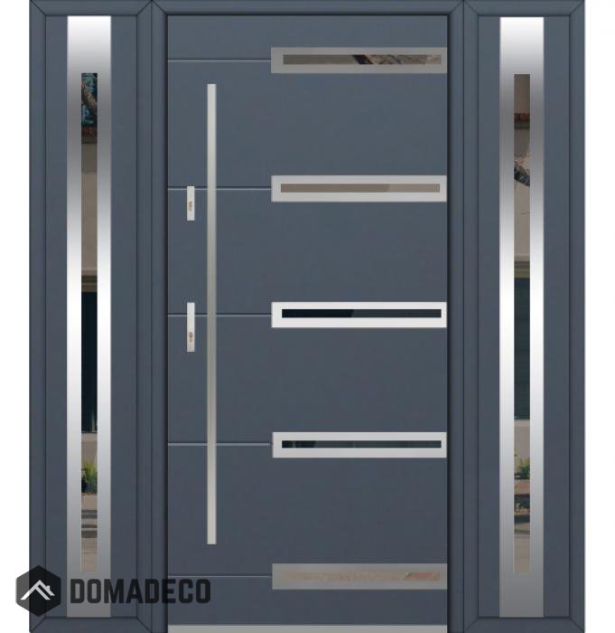 The door is made of stainless steel. Inside it is filled with PUR polyurethane foam and wood. The thickness of the door slab is 2.1 inch. Dual sealing system - one seal is in the dap of the frame and the other is located in the supporting part of the door slab. They reduce vibration and protect your house from losing the heat. They don't change their volume under the influence of atmospheric conditions. The door frame has anti-burglar reinforcements in hinge parts and locking points.