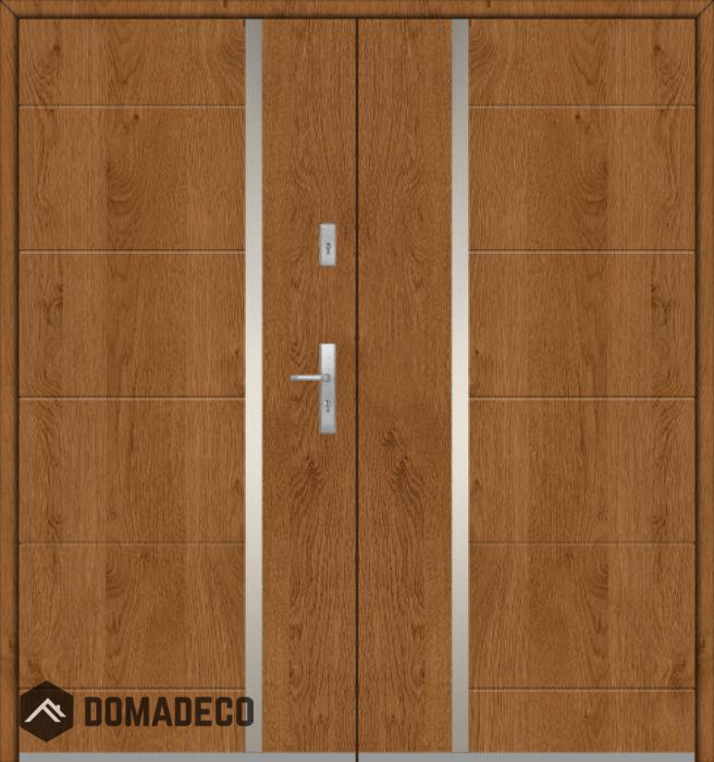 The door is made of stainless steel. Inside it is filled with PUR polyurethane foam and wood. The thickness of the door slab is 2.1 inch. Dual sealing system - one seal is in the dap of the frame and the other is located in the supporting part of the door slab. They reduce vibration and protect your house from losing the heat. They don't change their volume under the influence of atmospheric conditions. The door frame has anti-burglar reinforcements in hinge parts and locking points.