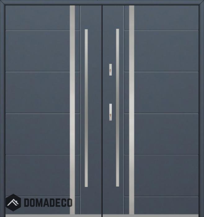 The door is made of stainless steel. Inside it is filled with PUR polyurethane foam and wood. The thickness of the door slab is 2.1 inch. Dual sealing system - one seal is in the dap of the frame and the other is located in the supporting part of the door slab. They reduce vibration and protect your house from losing the heat. They don't change their volume under the influence of atmospheric conditions. The door frame has anti-burglar reinforcements in hinge parts and locking points.