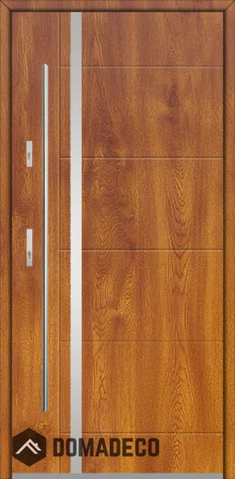 The door is made of stainless steel. Inside it is filled with PUR polyurethane foam and wood. The thickness of the door leaf is 64mm. Dual sealing system - one seal is in the dap of the frame and the other is located in the supporting part of the door leaf. They reduce vibration and protect your house from losing the heat. They don't change their volume under the influence of atmospheric conditions. The door frame has anti-burglar reinforcements in hinge parts and locking points.