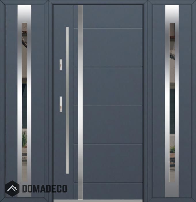 The door is made of stainless steel. Inside it is filled with PUR polyurethane foam and wood. The thickness of the door slab is 2.1 inch. Dual sealing system - one seal is in the dap of the frame and the other is located in the supporting part of the door slab. They reduce vibration and protect your house from losing the heat. They don't change their volume under the influence of atmospheric conditions. The door frame has anti-burglar reinforcements in hinge parts and locking points.