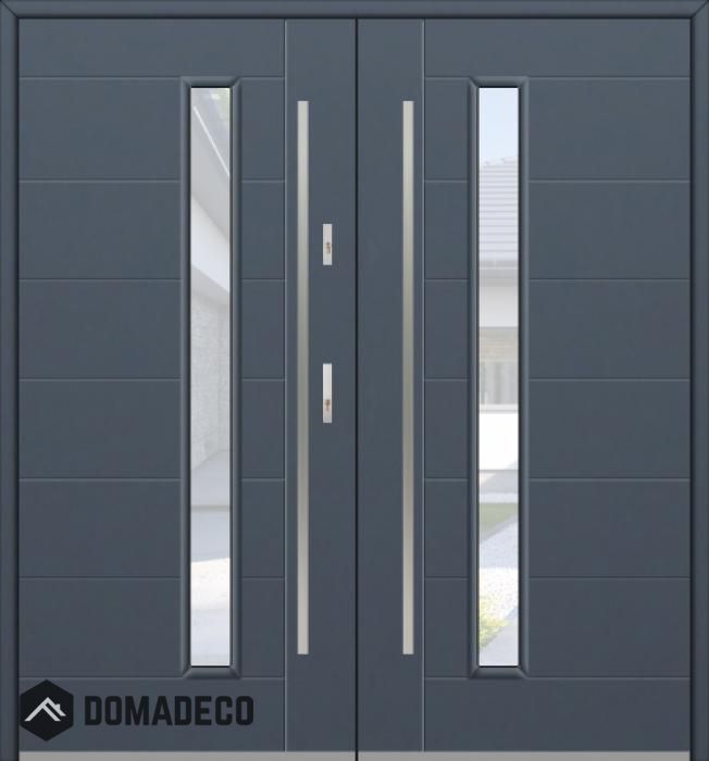 The door is made of stainless steel. Inside it is filled with PUR polyurethane foam and wood. The thickness of the door slab is 2.1 inch. Dual sealing system - one seal is in the dap of the frame and the other is located in the supporting part of the door slab. They reduce vibration and protect your house from losing the heat. They don't change their volume under the influence of atmospheric conditions. The door frame has anti-burglar reinforcements in hinge parts and locking points.