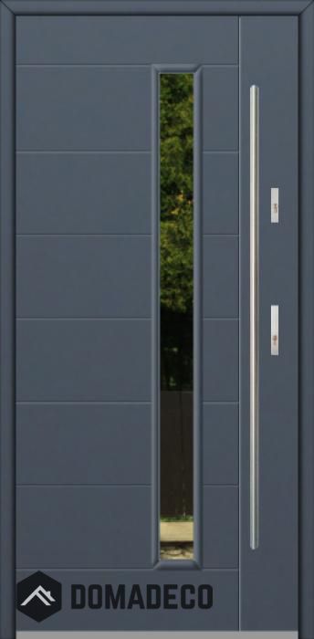The door is made of stainless steel. Inside it is filled with PUR polyurethane foam and wood. The thickness of the door leaf is 64mm. Dual sealing system - one seal is in the dap of the frame and the other is located in the supporting part of the door leaf. They reduce vibration and protect your house from losing the heat. They don't change their volume under the influence of atmospheric conditions. The door frame has anti-burglar reinforcements in hinge parts and locking points.