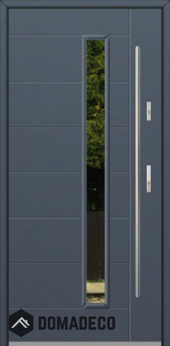 The door is made of stainless steel. Inside it is filled with PUR polyurethane foam and wood. The thickness of the door slab is 2.5 inch. Dual sealing system - one seal is in the dap of the frame and the other is located in the supporting part of the door slab. They reduce vibration and protect your house from losing the heat. They don't change their volume under the influence of atmospheric conditions. The door frame has anti-burglar reinforcements in hinge parts and locking points.