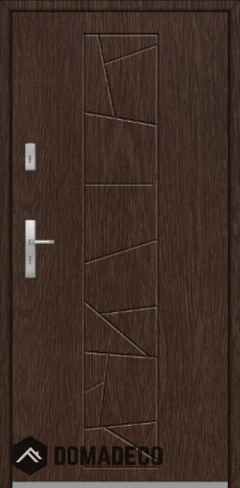 The door is made of stainless steel. Inside it is filled with PUR polyurethane foam and wood. The thickness of the door slab is 2.5 inch. Dual sealing system - one seal is in the dap of the frame and the other is located in the supporting part of the door slab. They reduce vibration and protect your house from losing the heat. They don't change their volume under the influence of atmospheric conditions. The door frame has anti-burglar reinforcements in hinge parts and locking points.
