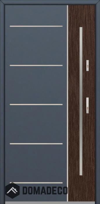 Modern design based on new technology consisting of flushing stainless steel elements on the door surface.
