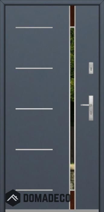 Modern design based on new technology consisting of flushing stainless steel elements on the door surface.