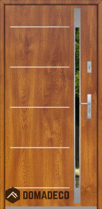 Modern design based on new technology consisting of flushing stainless steel elements on the door surface.