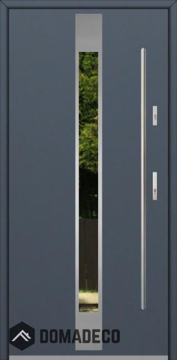 Modern design based on new technology consisting of flushing stainless steel elements on the door surface.