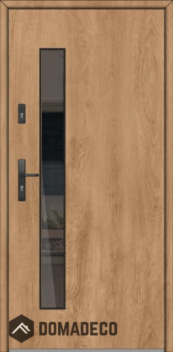 The door is made of stainless steel. Inside are filled with foam and wood. The casing is covered with aluminum.