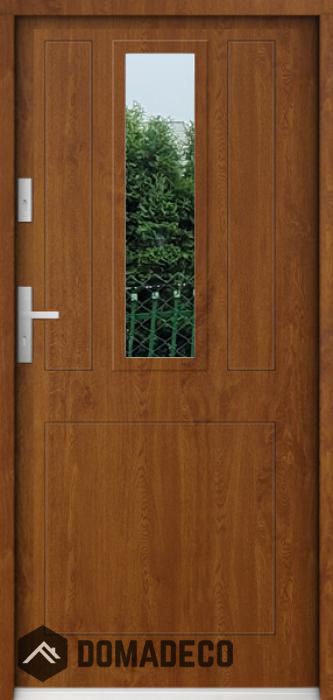 The door is made of stainless steel. Inside it is filled with PUR polyurethane foam and wood. The thickness of the door slab is 2.2 inch. Dual sealing system - one seal is in the dap of the frame and the other is located in the supporting part of the door slab. They reduce vibration and protect your house from losing the heat. They don't change their volume under the influence of atmospheric conditions. The door frame has anti-burglar reinforcements in hinge parts and locking points.
