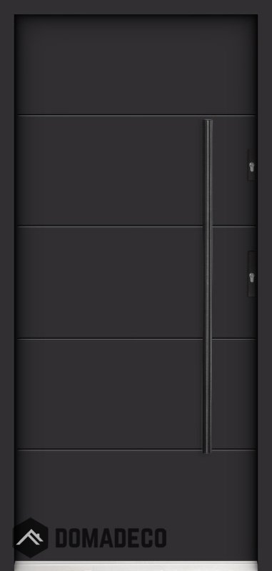 The door is made of stainless steel. Inside it is filled with PUR polyurethane foam and wood. The thickness of the door slab is 2.2 inch. Dual sealing system - one seal is in the dap of the frame and the other is located in the supporting part of the door slab. They reduce vibration and protect your house from losing the heat. They don't change their volume under the influence of atmospheric conditions. The door frame has anti-burglar reinforcements in hinge parts and locking points.