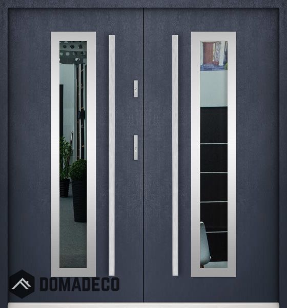 The door is made of stainless steel. Inside it is filled with PUR polyurethane foam and wood. The thickness of the door slab is 2.2 inch. Dual sealing system - one seal is in the dap of the frame and the other is located in the supporting part of the door slab. They reduce vibration and protect your house from losing the heat. They don't change their volume under the influence of atmospheric conditions. The door frame has anti-burglar reinforcements in hinge parts and locking points.