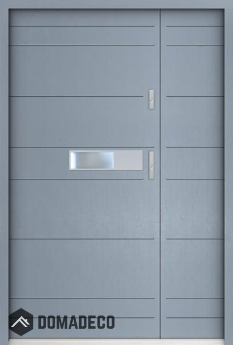 The door is made of stainless steel. Inside it is filled with PUR polyurethane foam and wood. The thickness of the door slab is 2.2 inch. Dual sealing system - one seal is in the dap of the frame and the other is located in the supporting part of the door slab. They reduce vibration and protect your house from losing the heat. They don't change their volume under the influence of atmospheric conditions. The door frame has anti-burglar reinforcements in hinge parts and locking points.