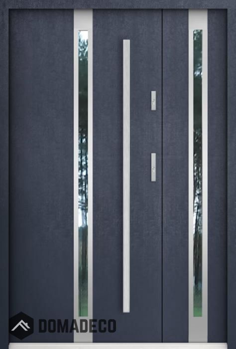 The door is made of stainless steel. Inside it is filled with PUR polyurethane foam and wood. The thickness of the door slab is 2.2 inch. Dual sealing system - one seal is in the dap of the frame and the other is located in the supporting part of the door slab. They reduce vibration and protect your house from losing the heat. They don't change their volume under the influence of atmospheric conditions. The door frame has anti-burglar reinforcements in hinge parts and locking points.