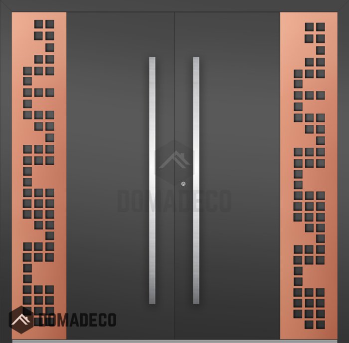 LIM C27 double - aluminum entry door covered copper sheet with cut-out squares
