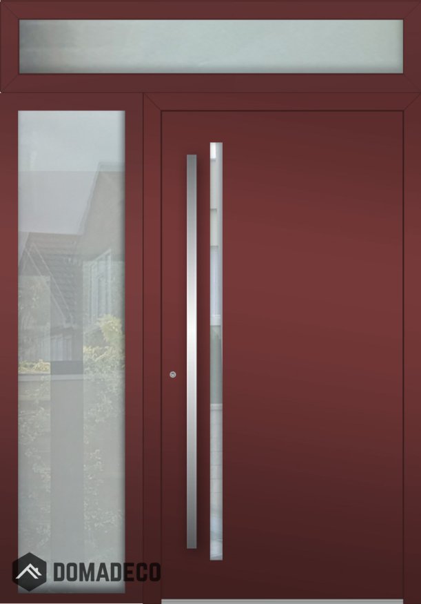 Aluminum LIM hinged door with left and top sidelight (view from the outside)