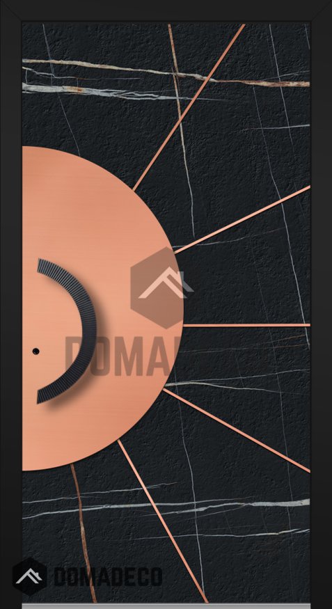 LIM Sahara - aluminium hinged door covered with Sahara Noir sintered quartz and copper sheet