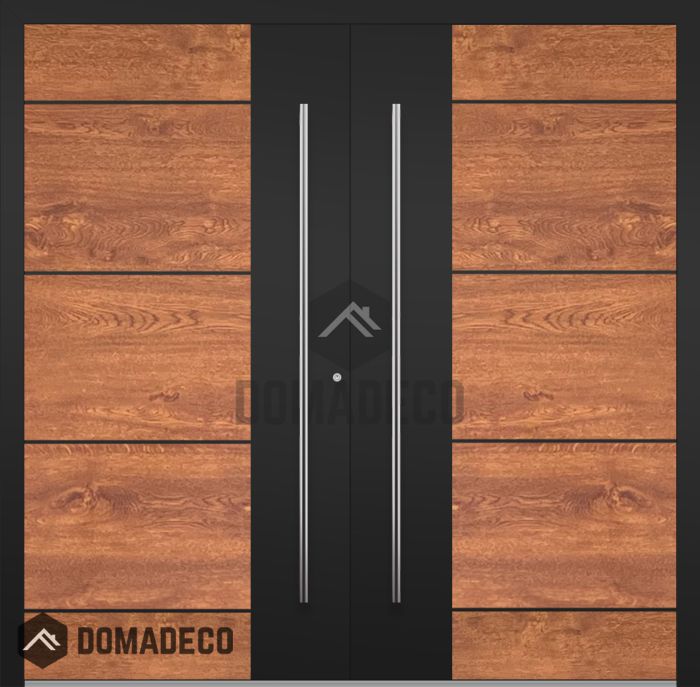 LIM v36 double - double aluminium front door with wooden decor