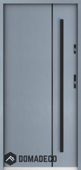 The door is made of stainless steel. Inside it is filled with PUR polyurethane foam and wood. The thickness of the door slab is 2.2 inch. Dual sealing system - one seal is in the dap of the frame and the other is located in the supporting part of the door slab. They reduce vibration and protect your house from losing the heat. They don't change their volume under the influence of atmospheric conditions. The door frame has anti-burglar reinforcements in hinge parts and locking points.