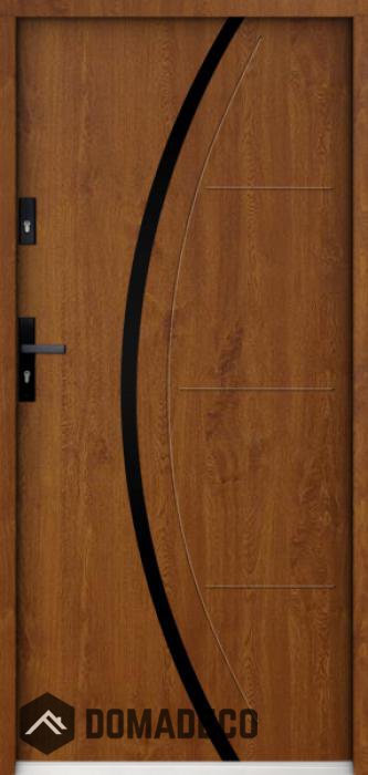 The door is made of stainless steel. Inside it is filled with PUR polyurethane foam and wood. The thickness of the door slab is 2.2 inch. Dual sealing system - one seal is in the dap of the frame and the other is located in the supporting part of the door slab. They reduce vibration and protect your house from losing the heat. They don't change their volume under the influence of atmospheric conditions. The door frame has anti-burglar reinforcements in hinge parts and locking points.