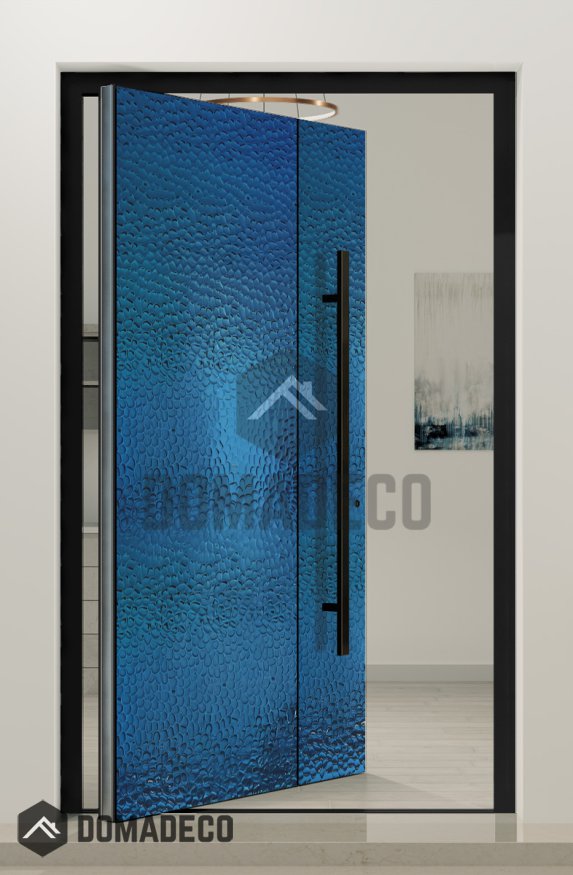PIVOT B3 - aluminum pivot door covered with blue stainless steel sheet