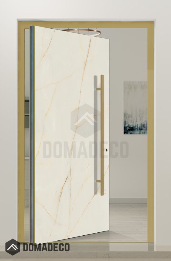 PIVOT Cristallo - aluminium pivot door covered with Cristallo sintered quartz