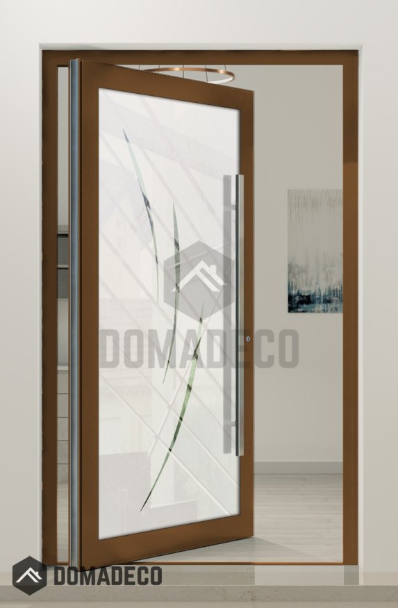 PIVOT Glass S19 - aluminum frosted pivot door with with transparent motif