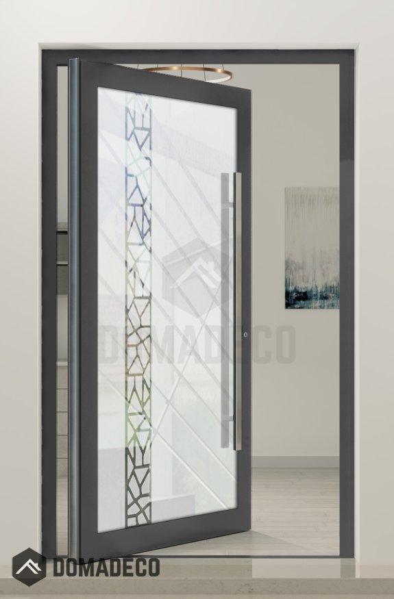 PIVOT Glass S21 - aluminum frosted pivot door with with transparent motif