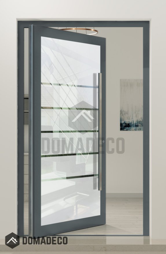 PIVOT Glass S5 - aluminium frosted pivot door with five transparent stripe