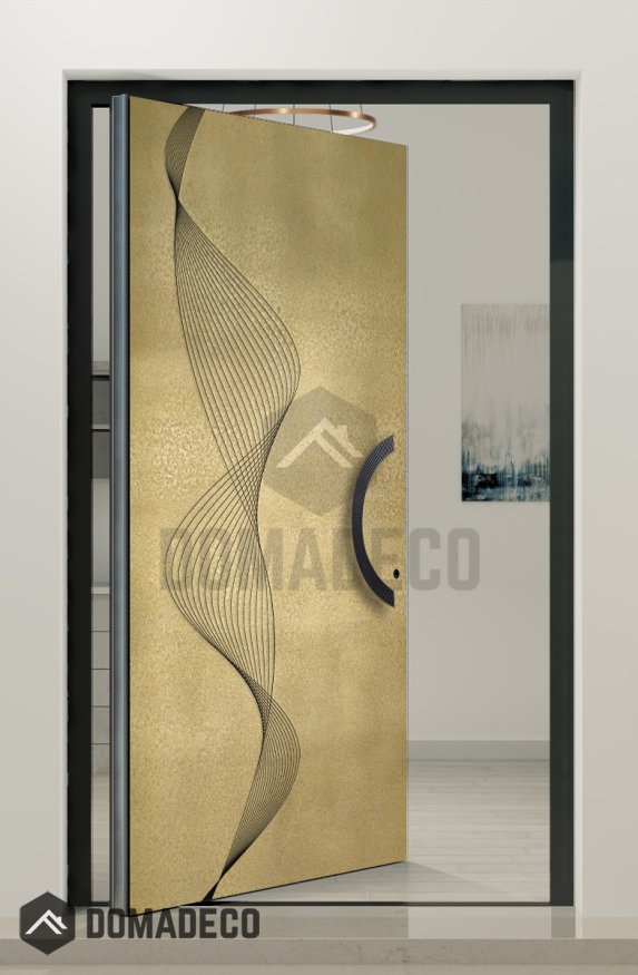 PIVOT M26 - aluminum pivot door with door with yellow brass texture of milled metal