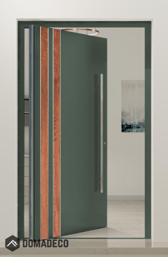 The wooden decor elements of the PIVOT V28 door add a touch of natural elegance and charm to its design. Available in a variety of finishes and wood types, such as classic oak, rich cherry, or sleek teak, the wooden accents can be customized to suit individual preferences and complement the overall style of the property. Each wooden detail is expertly crafted to highlight the unique grain patterns and textures of the wood, adding depth and character to the door's appearance.