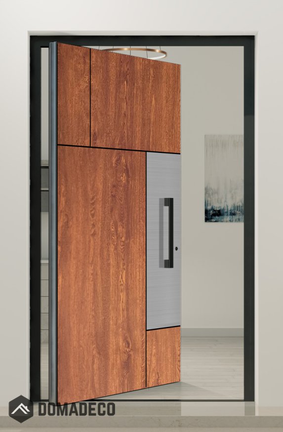 PIVOT V35 - aluminium wooden texture front door with inox decor